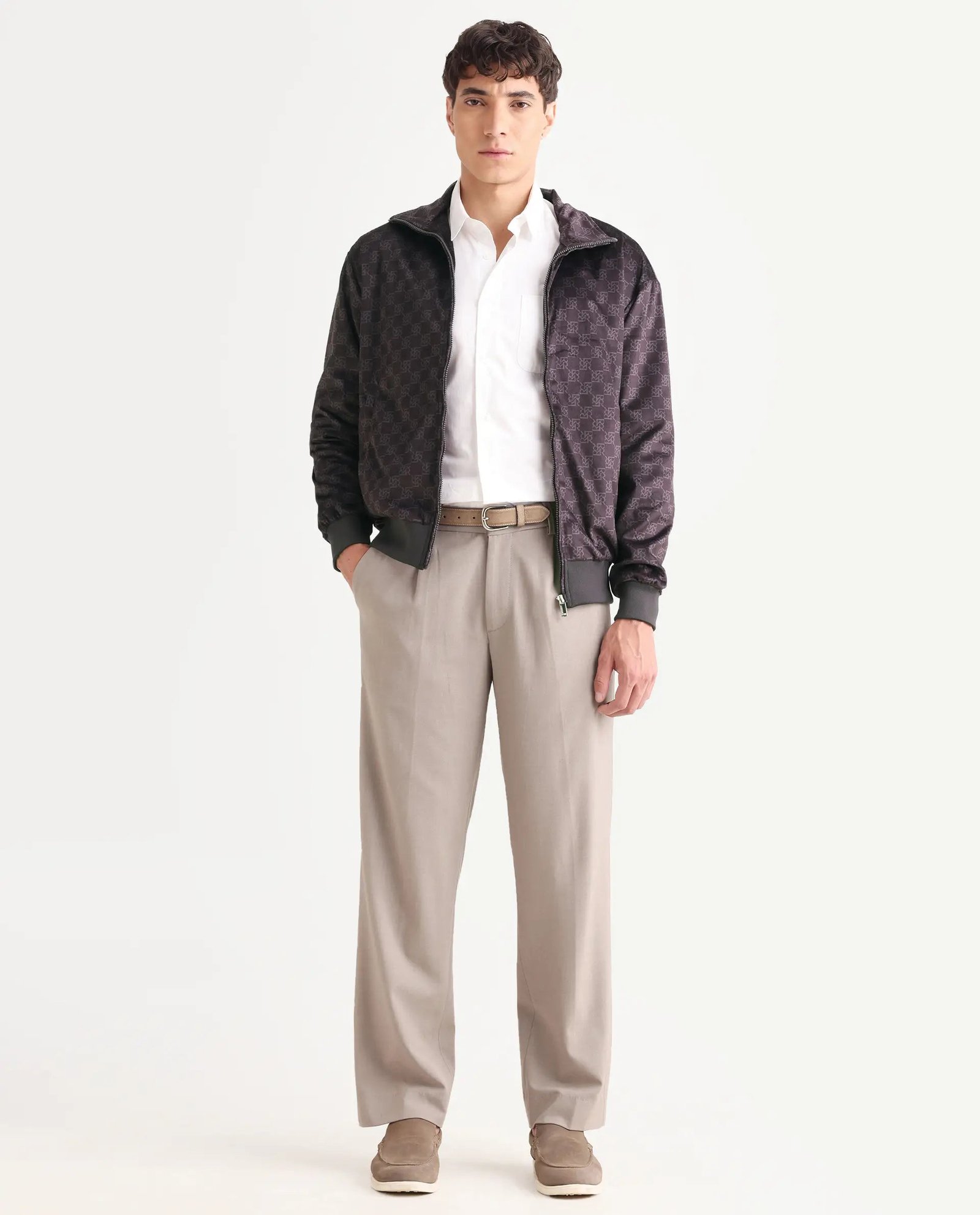 Elevate your casual wardrobe with this sophisticated dark brown jacket from Rare Rabbit. Crafted from premium polyester fabric. it features a refined high neck design and regular fit silhouette that flatters various body types. The geometric print adds contemporary visual interest while maintaining versatility for layering over shirts or sweaters. Perfect for transitional seasons. this piece combines comfort with polished styling. making it an essential layer for both weekend outings and smart-casual occasions.